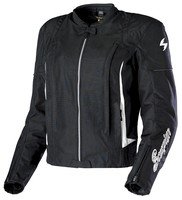 ?Constructed of a durable 600 denier nylon outer-shell with embroidered details?Removable full-sleeve EverHeatTM thermal liner?Exo-Tec CETM approved removable armor in elbows and shoulders?Back protector compartment with P.E. foam pad included?Dual zippered storage/hand-warmer pockets and one internal pocket?Stretch panels on sides for a feminine contoured fit?Ventilation system includes 2 front vents and 2 back vents?NightVizTM reflective trim on back and sleeves?Dual waist adjustments with snaps?Belt loop for pant attachment?Scorpion recommends this jacket for 50-85F