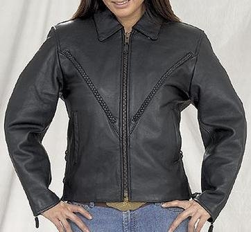Motorcycle Jackets, Womens Leather Motorcycle Jacket with Insulated Zip Out Lining and V-Shaped Braid detail, Womens Motorcycle Leather Jacket with Zip Out Lining. Womens Jacket is Made from Top Grade Heavy Duty Soft Leather. Jackets features a zip out lining that runs through the sleeves. Jacket includes neck warmer for those cooler days. - For Jackets best fit, order by chest size. Please use a cloth tape measure to measure the circumference of your chest / bust. Start from the center of your chest, run the tape measure under your arms around your back to the center of your chest. Measure fullest part of bust. When measuring jacket size, don't measure to tight, measure with your arms relaxed to the side. Add 1 inch to your final measurement. If you need further tips on measuring for a jacket, you can do a search for how to measure chest for a leather jacket and you will find some helpful hints, If you don't have a cloth Tape measure, you can use a string and compare the length to a tape measure in inches