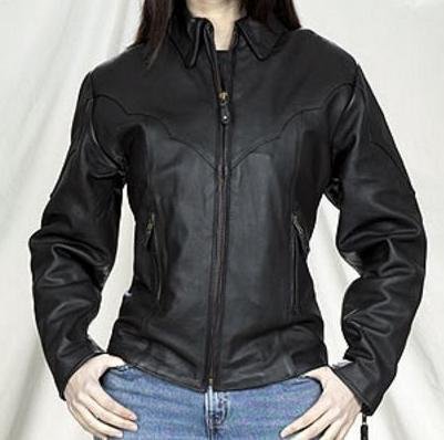 Ladies Leather Motorcycle Jackets, Women's Leather Motorcycle Jacket with stylish v-shaped accents and Insulated Zip Out Lining, WomensCasual or Leather Motorcycle Jacket with Zip Out Lining. Women's Jacketsare made from Top Grade Genuine Leather. Ladies Jacket features a Zip out lining that runs through the sleeves. Jacket also includes a neck warmer- For Jackets best fit, order by chest size. Please use a cloth tape measure to measure the circumference of your chest / bust. Start from the center of your chest, run the tape measure under your arms around your back to the center of your chest. Measure fullest part of bust. When measuring jacket size, don't measure to tight, measure with your arms relaxed to the side. Add 1 inch to your final measurement. If you need further tips on measuring for a jacket, you can do a search for how to measure chest for a leather jacket and you will find some helpful hints, If you don't have a cloth Tape measure, you can use a string and compare the length to a tape measure in inches