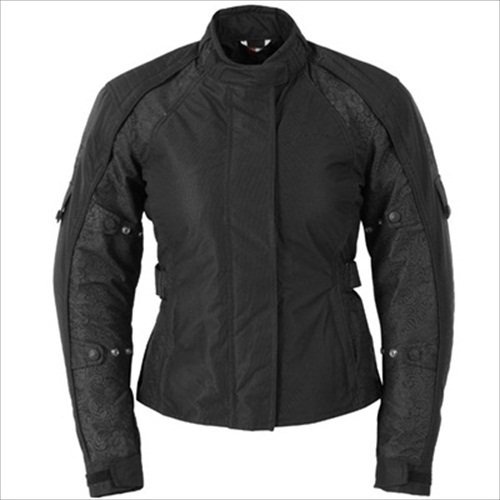 400D PU coated dobby outer shell with sublimated graphics. YKK front zipper closure. CE approved armor in shoulder and elbows with SP Memory Foam back pad. Rainguard 100% waterproof, breathable membrane. Ram Air shoulder and back vents for maximum air flow. Phosolite reflective piping for increased nighttime visibility. Two hand warmer pockets, zipped map pocket and two cargo lining pockets plus phone and cargo pockets on removable liner. Adjustable upper and lower sleeve take ups help secure armor in place. Zippered side adjustments. Adjustable Velcro waist tabs. Zip-out full sleeve quilted liner with 100g polyfill insulation. Microfiber padded collar. 8 zipper pants connection plus universal belt snap.Fieldsheer Womens Jackets Sizing ChartSizeXSSMLXL2XL3XL4XLSize4681012141618Chest30-3232-3434-3636-3838-4040-4242-4444-46Regular Sleeve23-2423-2424-2525-2625-2626-2726-2727-28Tall Sleeve2727.528