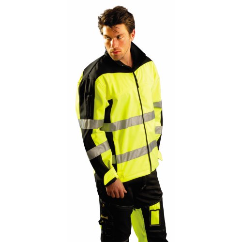 Premium motorcycle soft shell jacket. 2 In. 3M" Scotchlite" reflective material: two 360 horizontal stripes, four 360 horizontal sleeve stripes. 100% ANSI 107-2010 polyester high stretch fiber with water plantainer finish, inner core of waterproof PU laminate hydrophilic film and breathable membrane and fleece lining. Lightweight jacket is perfect for layering. Adjustable sleeve cuffs and YKK zippers. Elastic pull cord with spring loaded stopper for waist adjustment. Two front side pockets and 1 zippered sleeve phone pocket. ANSI class 3 compliant.