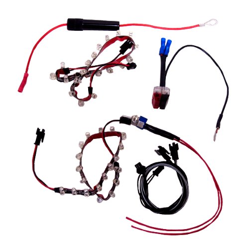 - Includes: Two 11 strips with 21 LED's each with adhesive backing, toggle switch, fire wire, connector box, fuse and installation instructions.