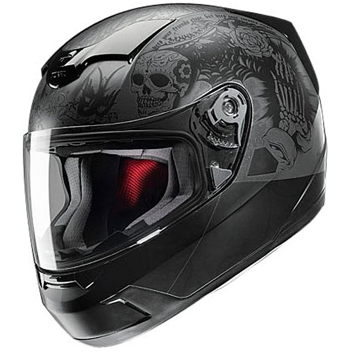 New rebellious graphics take the high-performance Venom by force Designed from the ground up to deliver everything a rider wants in a helmet Advanced ABS/polycarbonate shell Wind tunnel-proven ventilation system Dual-density EPS liner Removable moisture-wicking, anti-microbial Heal-Tec comfort liner Fog free shield offers no-tool quick release and shield look Two shell sizes to ensure a proper fit D-Ring closure system with padded neck straps DOT and ECE certified