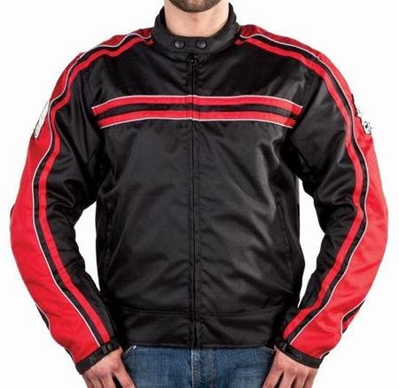 Armored Motorcycle Racing Jacket with removable Armor, Jackets are Vented and include a Zip Out Lining, Mens Armored Black & Red Textile blend Nylon-Mesh Motorcycle Jacket with Zip Out Lining. Jacket has Removable foam based CE Certified Armor on the back, shoulders and elbows Jacket also has Reflective Stripe on Jacket for safer riding at night. Jacket is lightweight, has multiple pockets, zippered cuffs and Zipper vent on back for warm days. - For Jackets best fit, order by chest size. How to get the correct fit Please use a cloth tape measure to measure the circumference of your chest. If the measurement is an even number add 2 to get the next even number. If the number you get is an odd number add 1 to get the next even number. The general rule is order the next even number. If the measurement is 46 order 48. If the measurement you get is 47, order size 48. If you don't have a cloth Tape measure, you can use a string and compare the length to a tape measure in inches. If you need further tips you can do a search for how to measure chest for a leather jacket and you will find some helpful hints