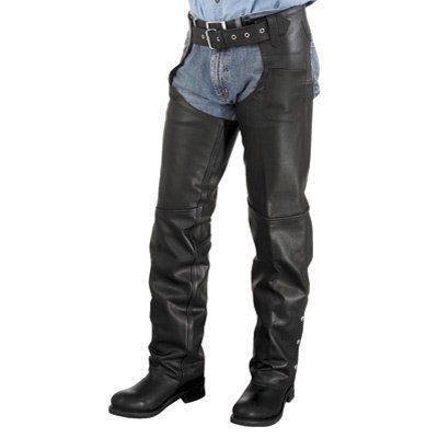 The River Road Basic Leather Motorcycle Chaps are manufactured and made with high quality full grain leather that fits comfortably and helps to block the cold wind and debris from hitting against your legs. The River Road Basic Leather Motorcycle Chaps are designed with an adjustable waist for a comfortable fit. The River Road Basic Leather Motorcycle Chaps are a great product at an affordable price. Quality, full-grain, imported leather. Nylon-stitched for extra durability. Genuine YKK zippers. Thigh Measurements: Medium - 22.5" Large - 23.5 X-Large - 25" XX-Large - 26.5 XXX-Large - 28"